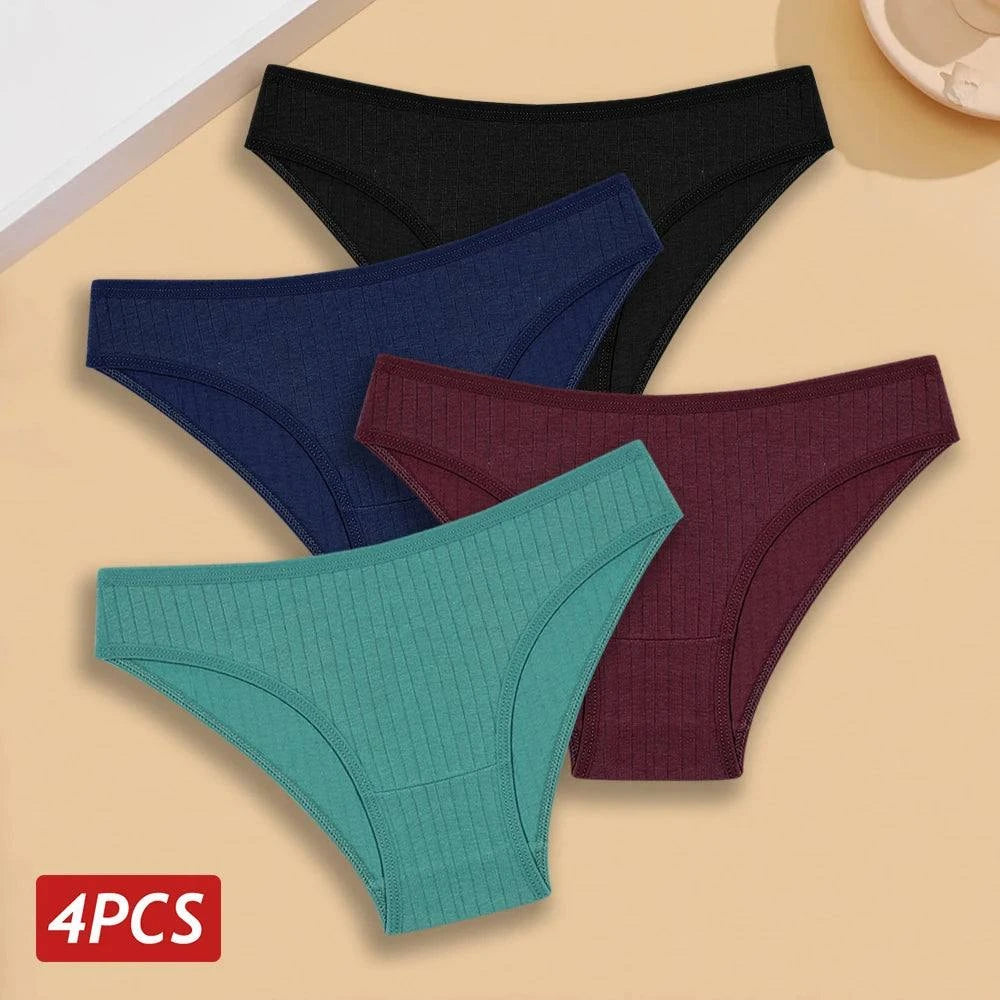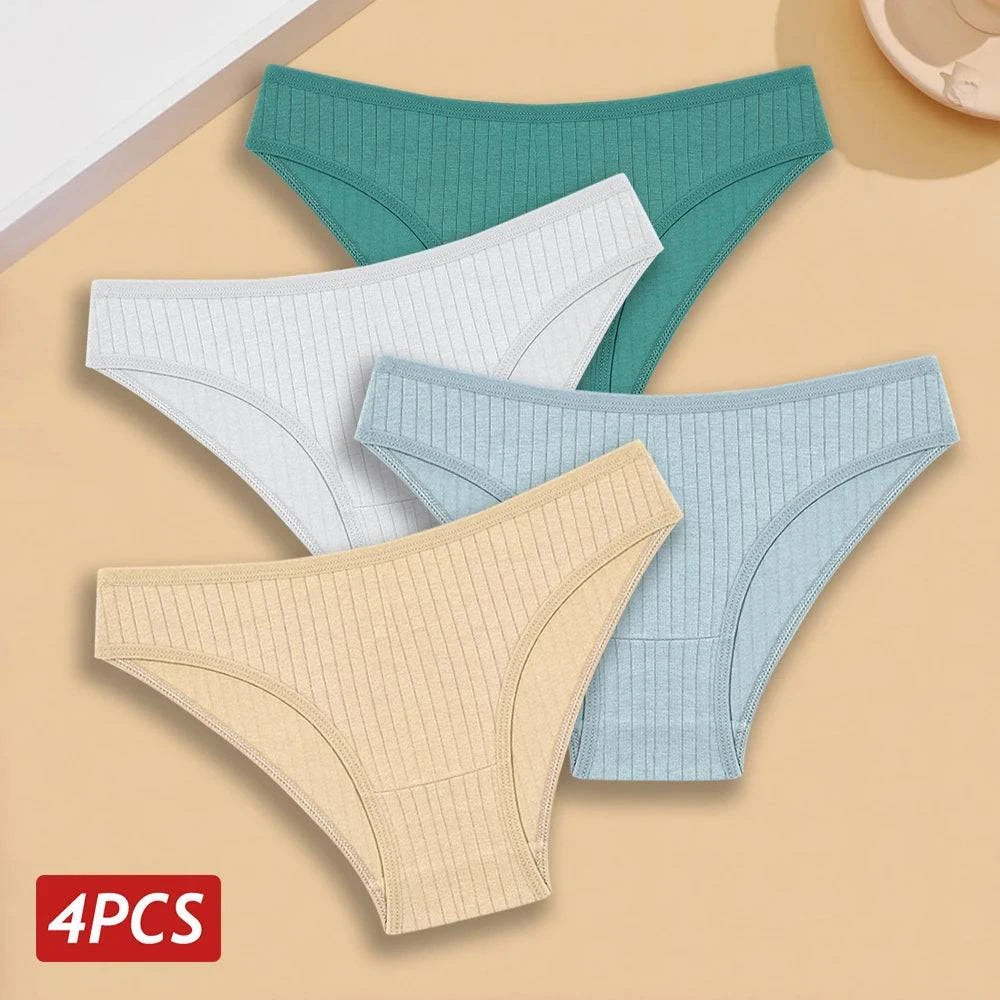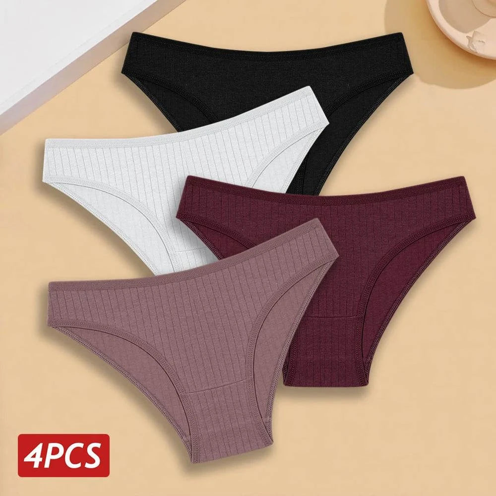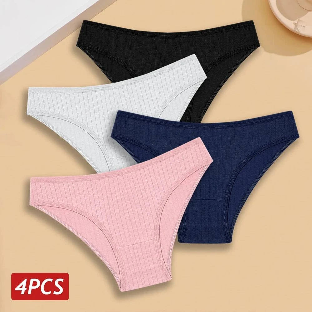 4PCS Cotton Panties Set | Sexy Low Rise Ribbed Underwear for Women 🌸