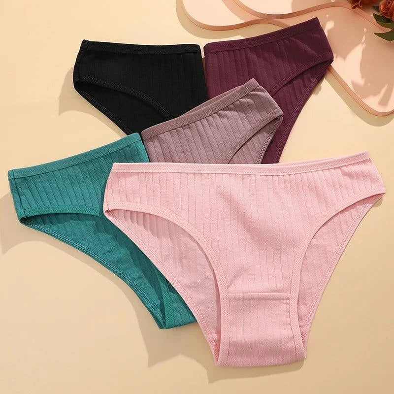 Refresh your lingerie drawer with this 4PCS/set of cotton panties for women. These sexy low rise briefs feature a ribbed design, offering both style and comfort. Made from breathable cotton, they provide a soft and snug fit, perfect for everyday wear. Available in solid colors, these basic underpants are a must-have addition to any woman’s collection, combining practicality with a touch of allure! 🌟