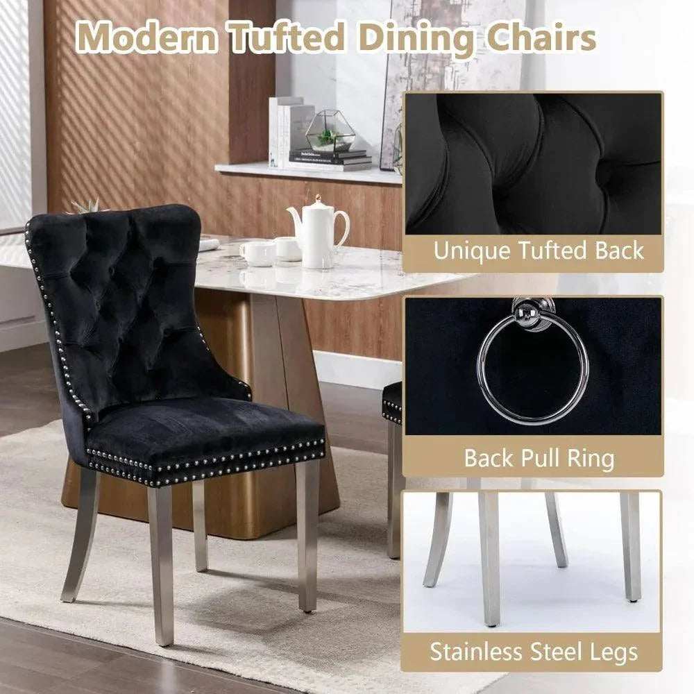 Transform your dining area with the 5-Piece Glass Dining Set 🍽️, featuring a stunning 51” rectangular tempered glass table paired with luxurious velvet chairs. Perfect for modern home design ideas, this dining set adds an elegant touch to your living space while providing ample seating for four. The combination of glass and metal gives it a contemporary look, making it a versatile addition to any dining room or kitchen. The velvet chairs ensure comfort, while the minimalist design enhances your interior décor. A must-have for anyone seeking both style and function in their dining space. ✨