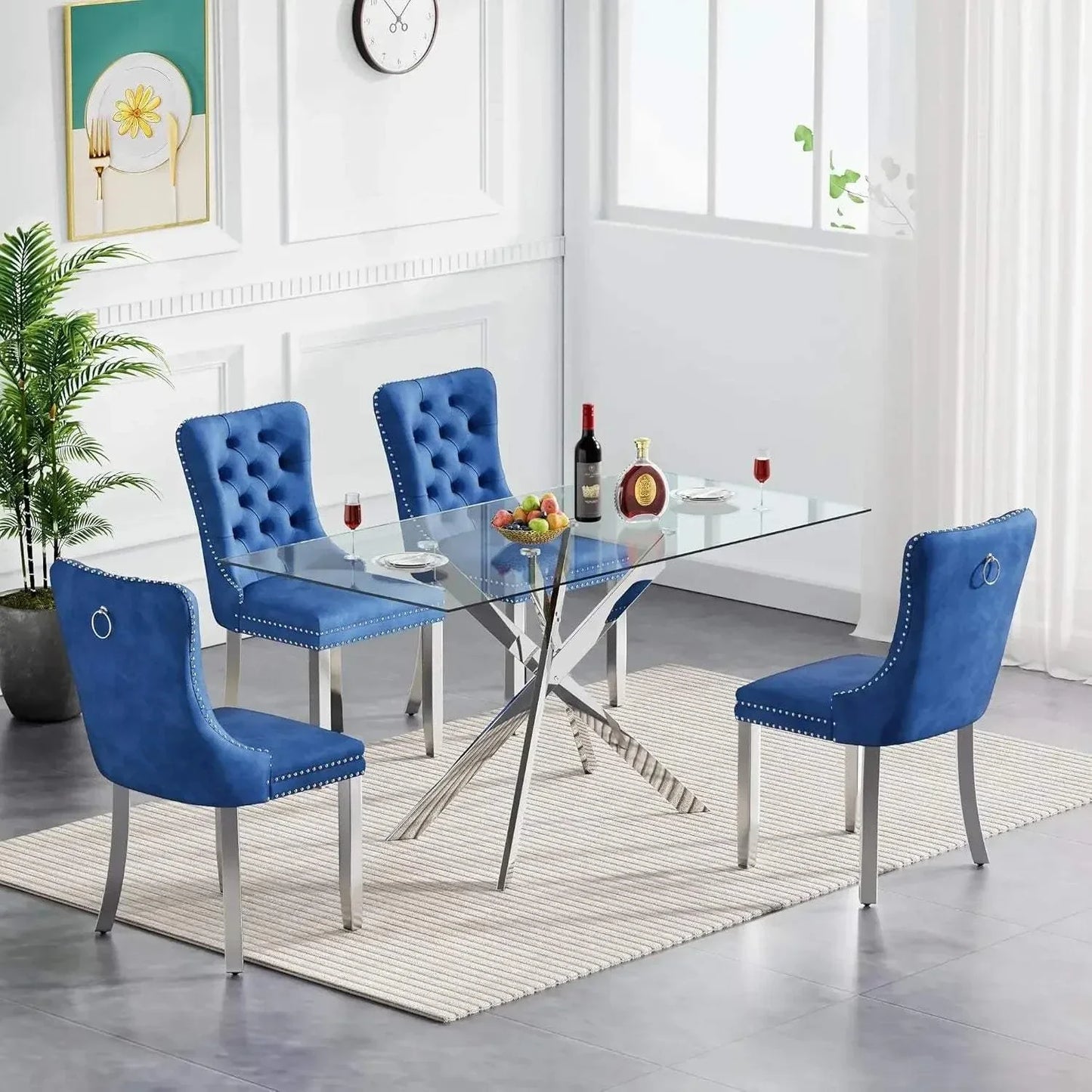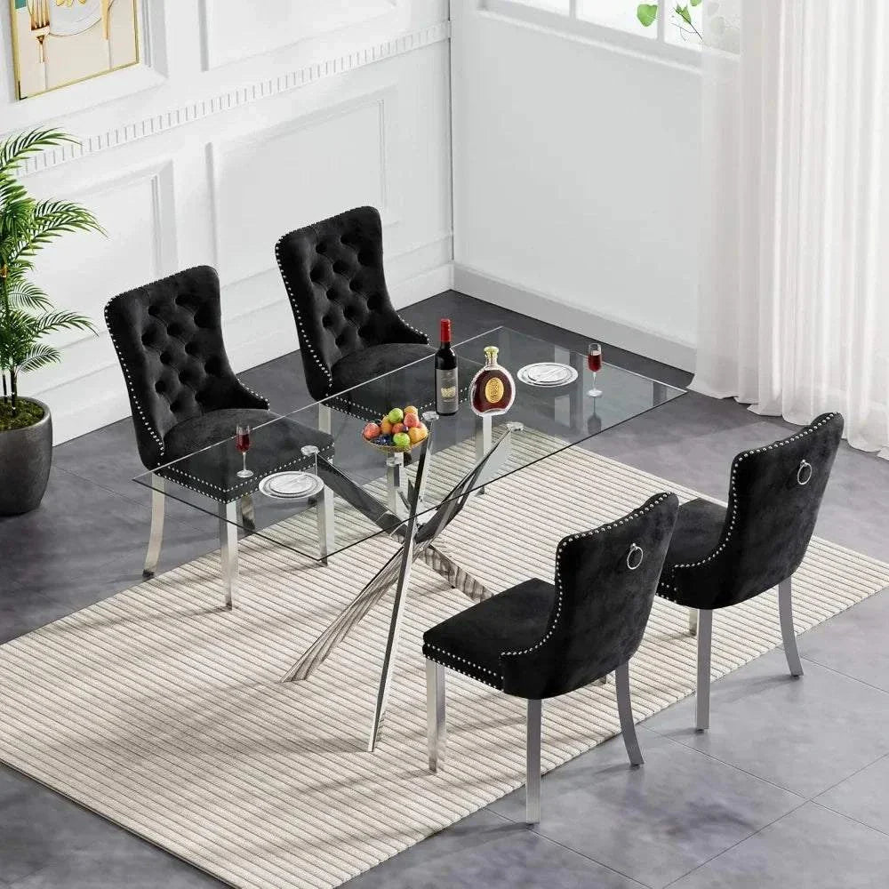 5-Piece Glass Dining Set 🍽️ | 51” Rectangular Table with Velvet Chairs, Set for 4