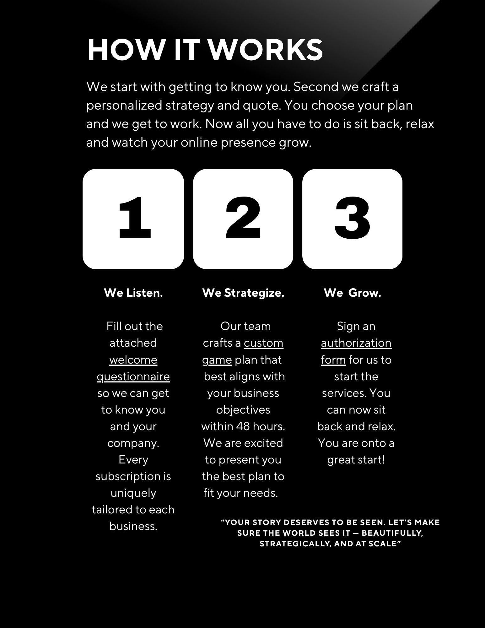 Week 2: Content is created, the first month of content is sent to the client for approval.