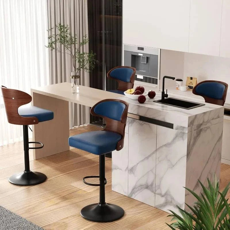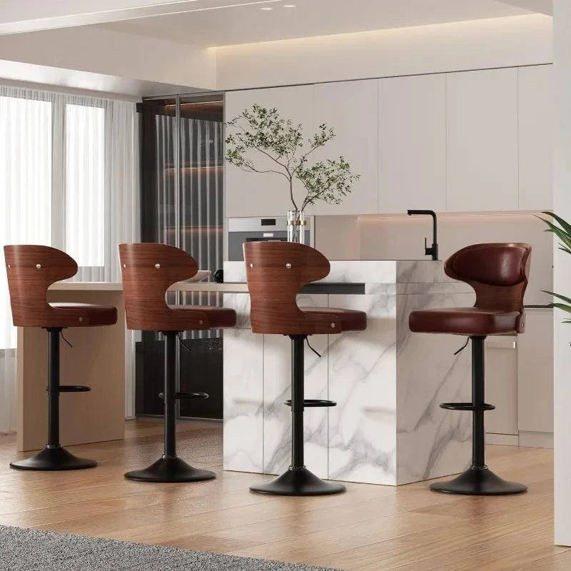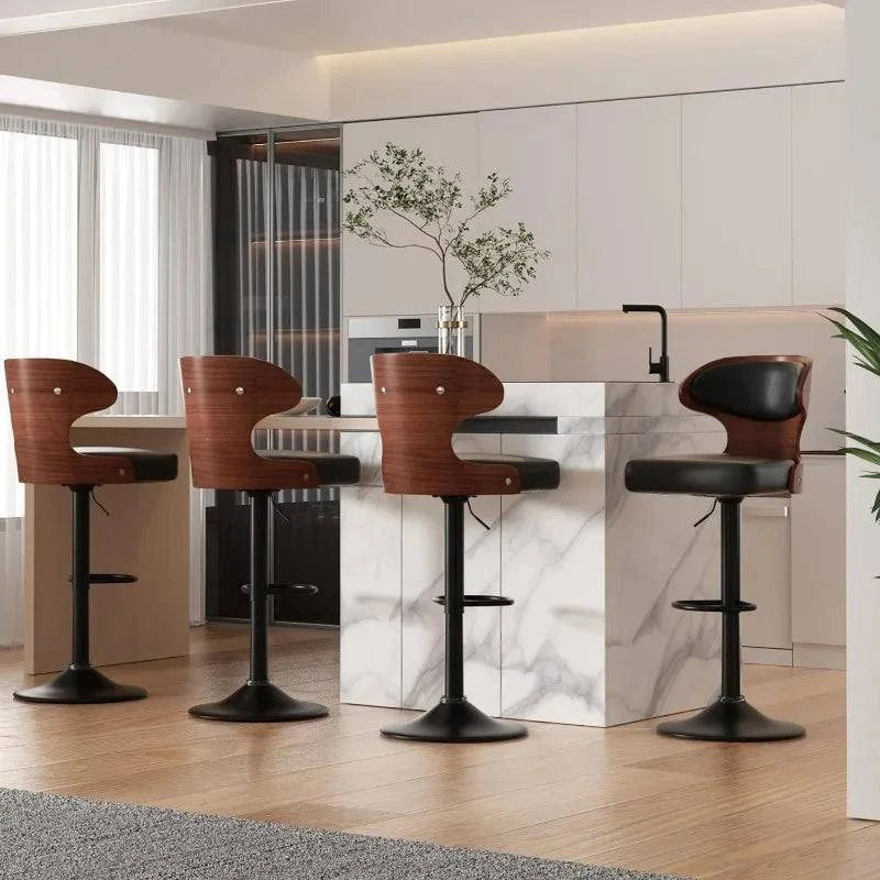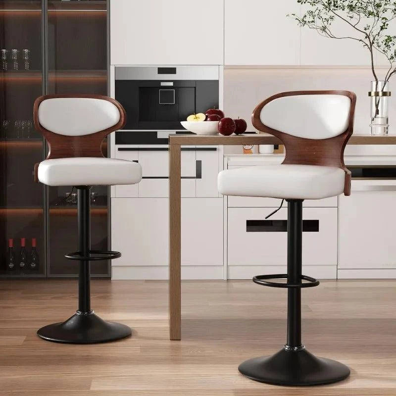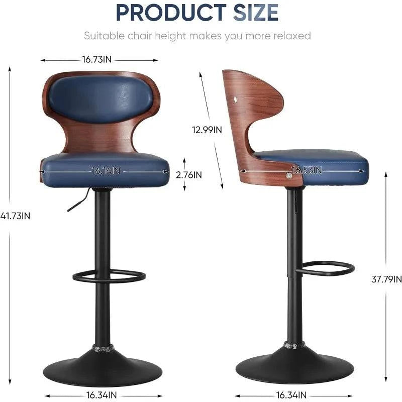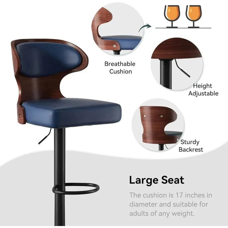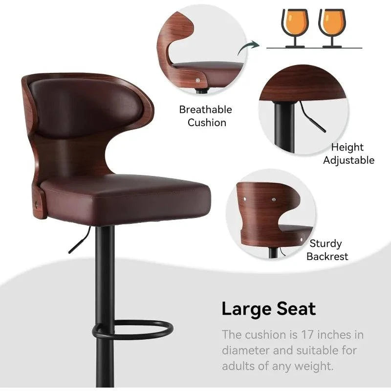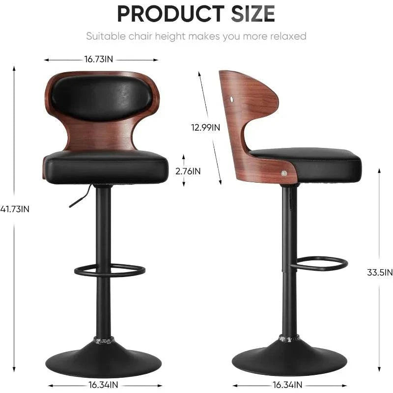 Add a touch of elegance and comfort to your home bar or kitchen with this stylish set of adjustable bar stools. Featuring a sleek bentwood design, each stool swivels smoothly and comes equipped with a comfortable backrest and footrest for ultimate relaxation. The adjustable height (24.5-33.5 inches) makes them perfect for a variety of counter or bar heights. Whether you're entertaining guests or enjoying a quiet evening, these stools combine modern style with practical functionality.