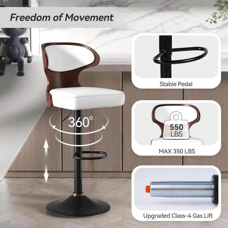 Bar Stools Set of 2, Adjustable Height 24.5-33.5IN, Bentwood Swivel with Back & Footrest 🍸