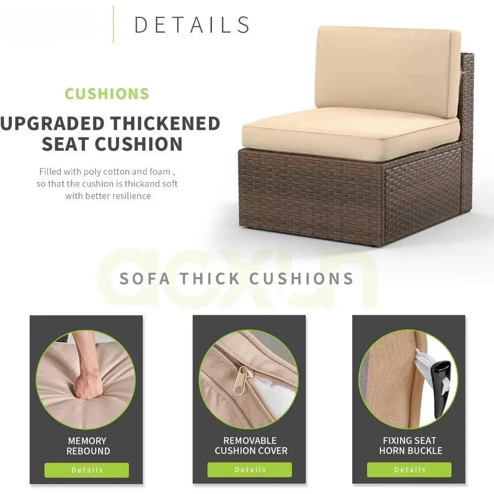 Transform your outdoor space with this stylish 8-Piece Patio Set. Featuring an L-shaped sofa and a built-in fire pit, this set is perfect for cozy gatherings, whether you're relaxing or entertaining guests. The minimalist modern design and high-quality rattan/wicker material bring a contemporary touch to any garden or patio, ensuring durability and comfort for years to come.