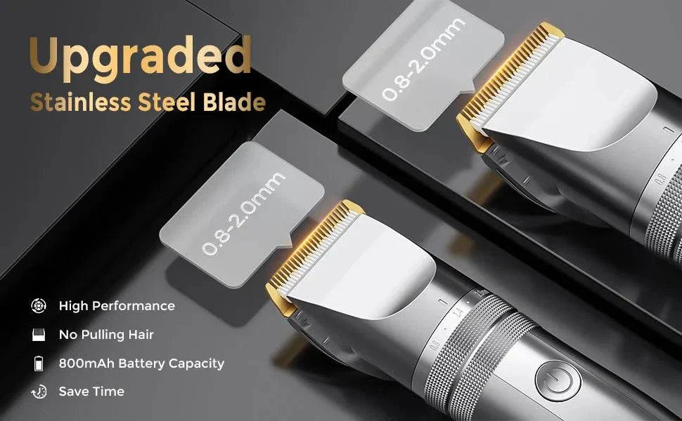 The Hair Clippers for Men are expertly designed for those who demand precision and quality in their grooming routine. These professional cordless barber clippers offer powerful performance for effortless hair cutting and styling. Featuring a rechargeable battery, they provide the convenience of cordless operation, allowing you to groom anywhere with ease. The ergonomic design ensures a comfortable grip, while the sharp blades deliver clean, even cuts. Whether you're maintaining your hairstyle or grooming your beard, the Hair Clippers for Men are the ultimate tool for achieving a polished look.